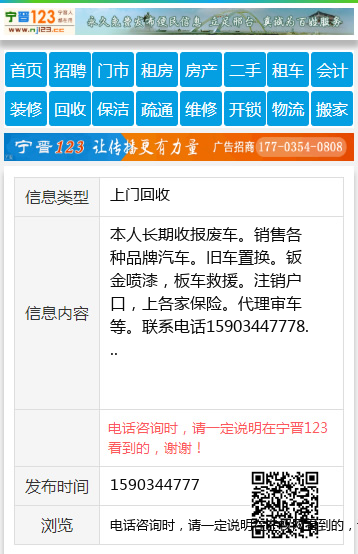 本人长期收报废车。销售各种品牌汽车。旧车置换。钣金喷漆,板车救援。注销户口,上各家保险。代理审车等。联系电话15903447778