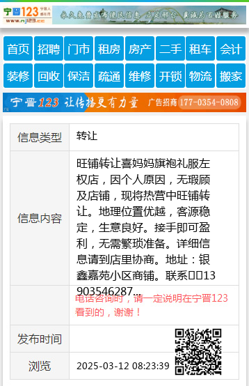 喜妈妈旗袍礼服左权店,因个人原因,无瑕顾及店铺,现将热营中旺铺转让。地理位置优越,客源稳定,生意良好。接手即可盈利,无需繁琐准备。详细信息请到店里协商。