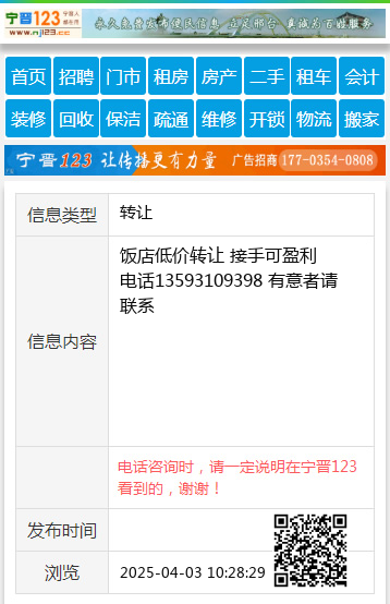 饭店低价转让 接手可盈利 电话13593109398 有意者请联系