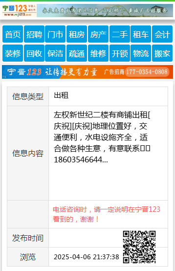 左权新世纪二楼有商铺出租[庆祝][庆祝]地理位置好,交通便利,水电设施齐全,适合做各种生意,有意联系☎️18603546644 【电话咨询时,请一定说明在左权网看到的,谢谢!】 |