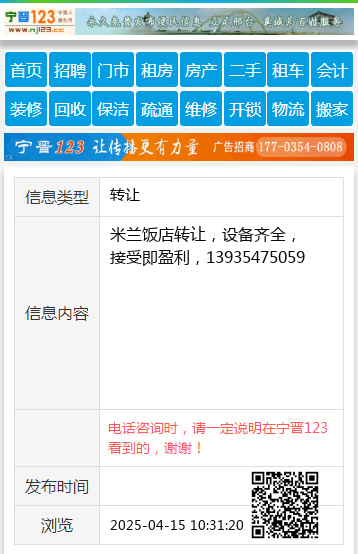 因两地分居,家中锁事太多,将营业中的饭店低价转让,有意者联系电话18635447873