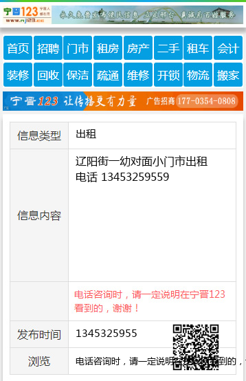 辽阳街一幼对面小门市出租 电话 13453259559