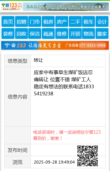 应家中有事阜生煤矿饭店忍痛转让 位置不错 煤矿工人稳定有想法的联系电话18335419238