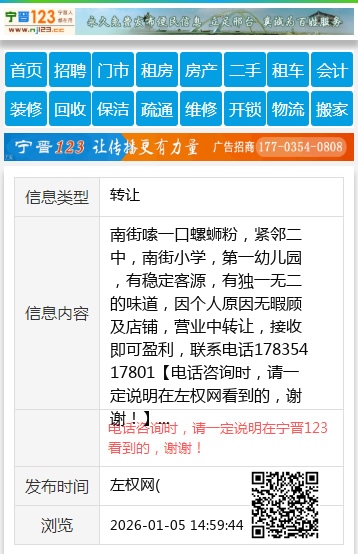 南街嗦一口螺蛳粉,紧邻二中,南街小学,第一幼儿园,有稳定客源,有独一无二的味道,因个人原因无暇顾及店铺,营业中转让,接收即可盈利,联系电话17835417801 【电话咨询时,请一定说明在左权网看到的,谢谢!】 |