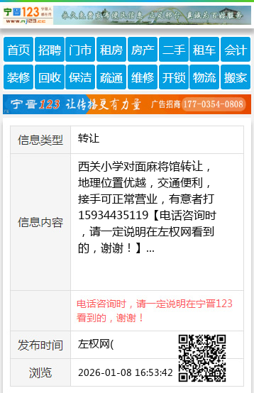免责声明:本栏目信息由网友自行发布,左权网不承担任何责任!提高警惕,谨防诈骗!做推广、做信息置顶!请加左权网客服微信:zqliuchao