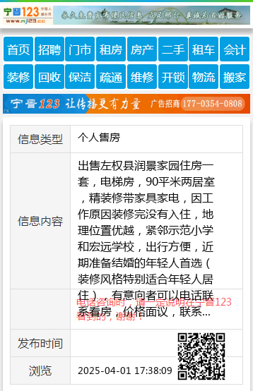 出售左权县润景家园住房一套,电梯房,90平米两居室,精装修带家具家电,因工作原因装修完没有入住,地理位置优越,紧邻示范小学和宏远学校,出行方便,近期准备结婚的年轻人首选(装修风格特别适合年轻人居住),有意向者可以电话联系看房,价格面议,联系电话18635400770. 【电话咨询时,请一定说明在左权网看到的,谢谢!】 |