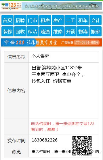 出售:滨峰苑小区118平米 三室两厅两卫 家电齐全,拎包入住 价格实惠