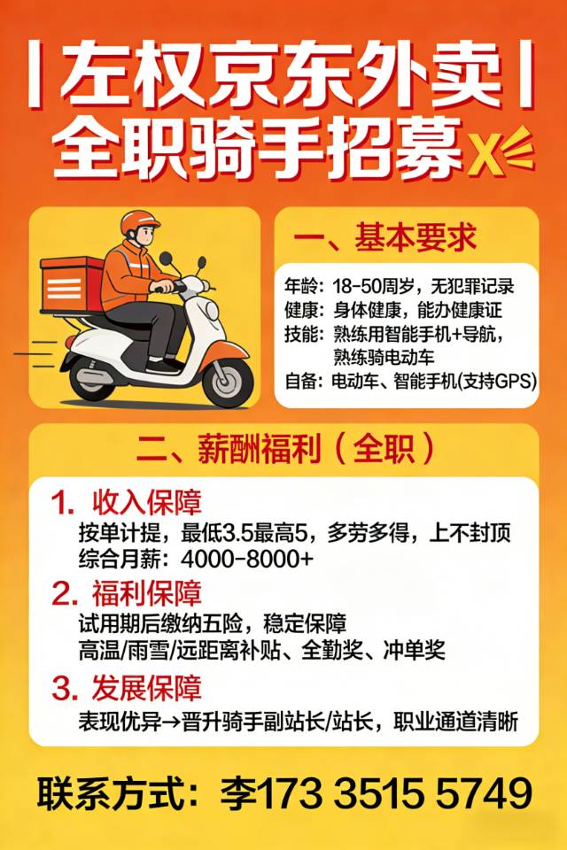 左权县专送骑手,家门口的好工作!