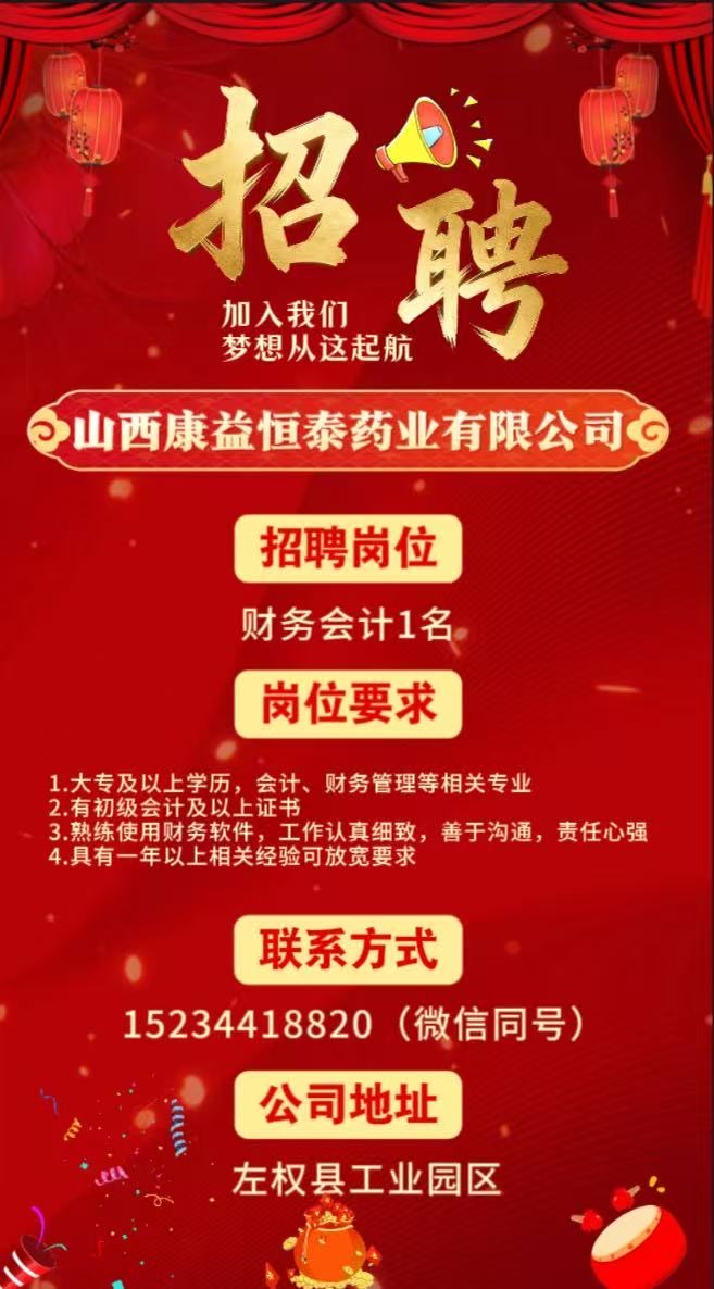 招聘财务会计一名,有经验者待遇从优 【电话咨询时,请一定说明在左权网看到的,谢谢!】 |