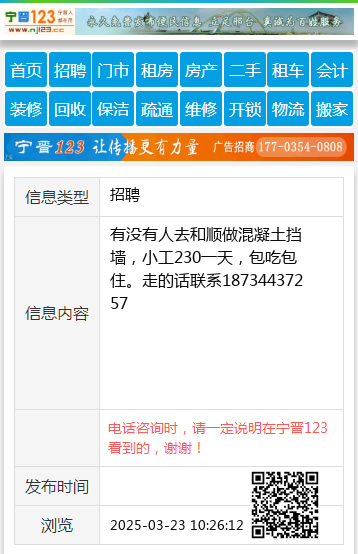 有没有人去和顺做混凝土挡墙,小工230一天,包吃包住。走的话联系18734437257