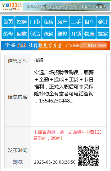 宏远广场招聘导购员,底薪+全勤+提成+工龄+节日福利,正式入职后可享受保险补助金