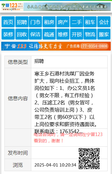 寒王乡石港村洗煤厂因业务扩大,现向社会招工,具体岗位如下: