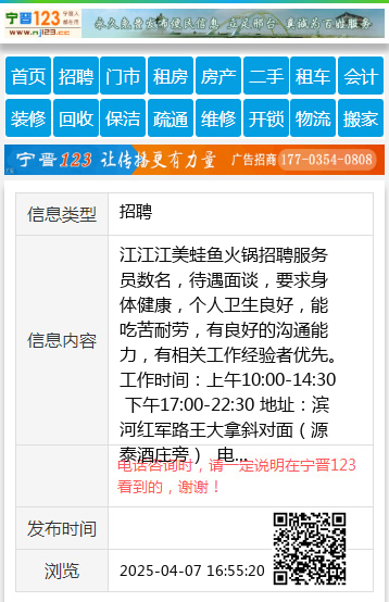 江江江美蛙鱼火锅招聘服务员数名,待遇面谈,要求身体健康,个人卫生良好,能吃苦耐劳,有良好的沟通能力,有相关工作经验者优先。
