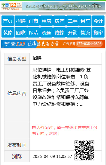 职位详情:电工机械维修 基础机械维修