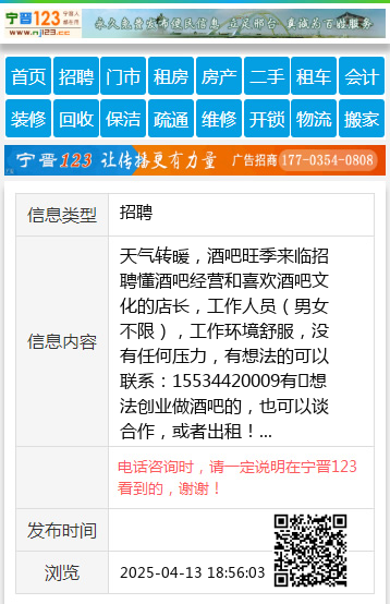 招聘懂酒吧经营和喜欢酒吧文化的店长,工作人员(男女不限),工作环境舒服,没有任何压力,有想法的可以联系:15534420009