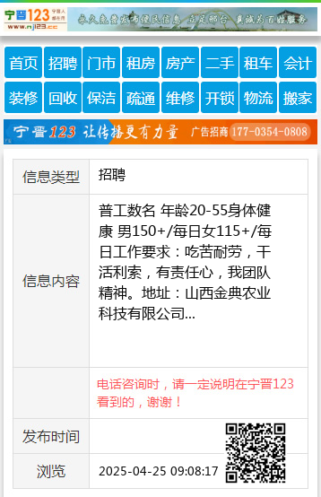 工作要求:吃苦耐劳,干活利索,有责任心,我团队精神。