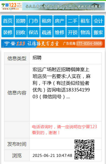 宏远广场附近招聘棋牌室上班店员一名要求:人实在,麻利,干净(有过类似经验者优先)
