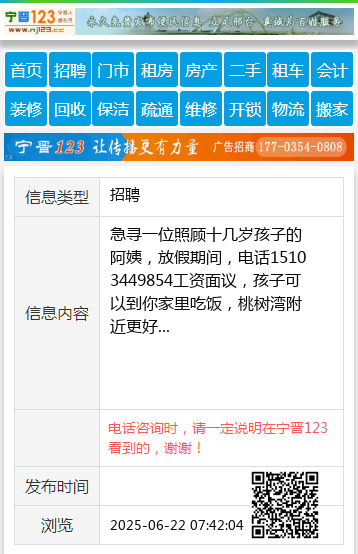 急寻一位照顾十几岁孩子的阿姨,放假期间,电话15103449854工资面议,孩子可以到你家里吃饭,桃树湾附近更好 【电话咨询时,请一定说明在左权网看到的,谢谢!】 |