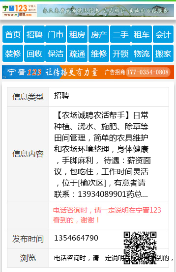 【农场诚聘农活帮手】日常种植、浇水、施肥、除草等田间管理,简单的农具维护和农场环境整理,身体健康,手脚麻利, 待遇:薪资面议,包吃住,工作时间灵活,位于[榆次区],有意者请联系:13934089901药总