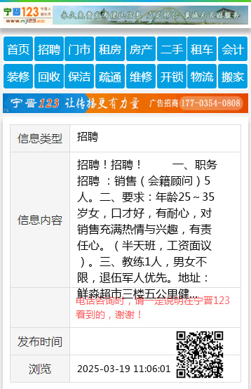 二、要求:年龄25~35岁女,口才好,有耐心,对销售充满热情与兴趣,有责任心。(半天班,工资面议)。