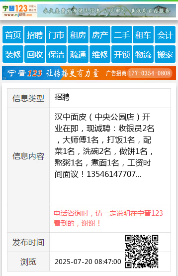 汉中面皮(中央公园店)开业在即,现诚聘:收银员2名,大师傅1名,打饭1名,配菜1名,洗碗2名,做饼1名,熬粥1名,煮面1名,工资时间面议!13546147707 【电话咨询时,请一定说明在左权网看到的,谢谢!】 |