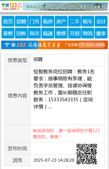 要求:做事细致有条理,能负责学员管理、排课协调等教务工作,需长期稳定任职