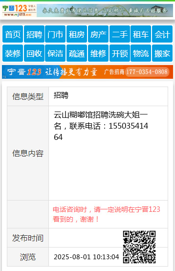 云山糊嘟馆招聘洗碗大姐一名,联系电话:15503541464