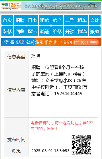 招聘一位照看8个月左右孩子的宝妈(上课时间照看)