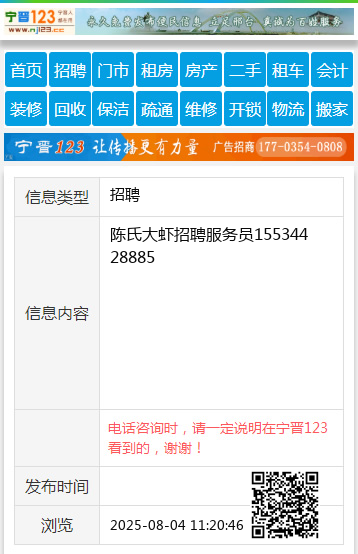 陈氏大虾招聘服务员15534428885