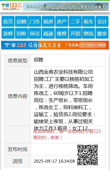 3.薪资:女工120/天,时间早8到晚8,招募人数不限。 【电话咨询时,请一定说明在左权网看到的,谢谢!】 |