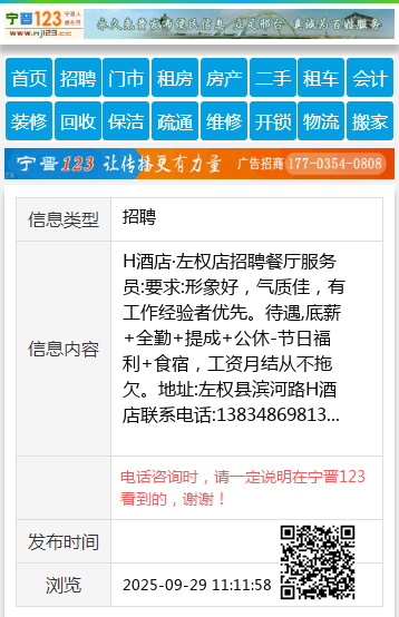 | 防骗提醒: | 左权网(www.zuoquanwang.cn)提醒您:手工活、网络兼职、刷单,都是骗子!凡以各种名义收取费用的都是骗子!找工作是往兜里挣钱,让你往外掏钱的都是骗子!异地招聘请提高警惕,谨防诈骗! |