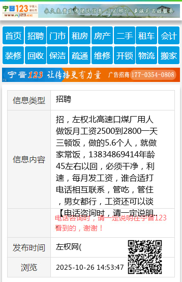 招,左权北高速口煤厂用人做饭月工资2500到2800一天三顿饭,做的5.6个人,就做家常饭,13834869414年龄45左右以回,必须干净,利速,每月发工资,谁合适打电话相互联系,管吃,管住,男女都行,工资还可以谈 【电话咨询时,请一定说明在左权网看到的,谢谢!】 |