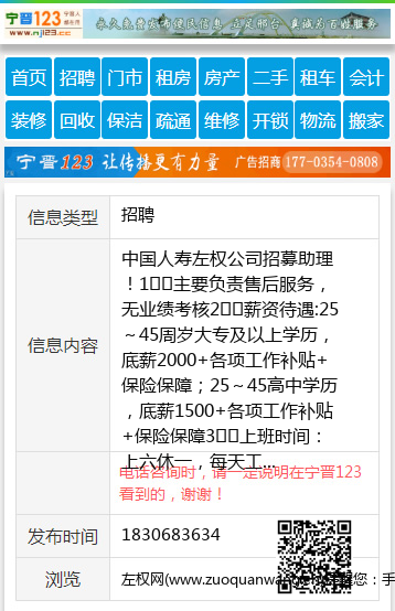 免责声明:本栏目信息由网友自行发布,左权网不承担任何责任!提高警惕,谨防诈骗!做推广、做信息置顶!请加左权网客服微信:zqliuchao